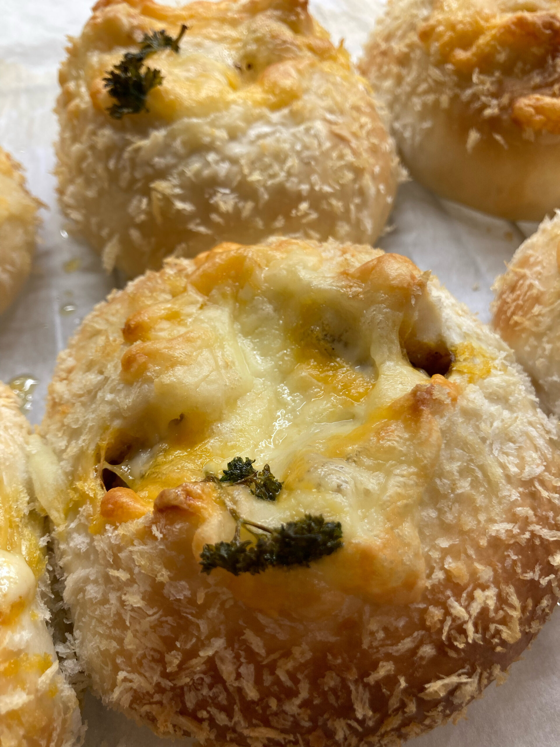 マヨネーズを絞ってさらにチーズ、パセリをのせて焼きまーす!