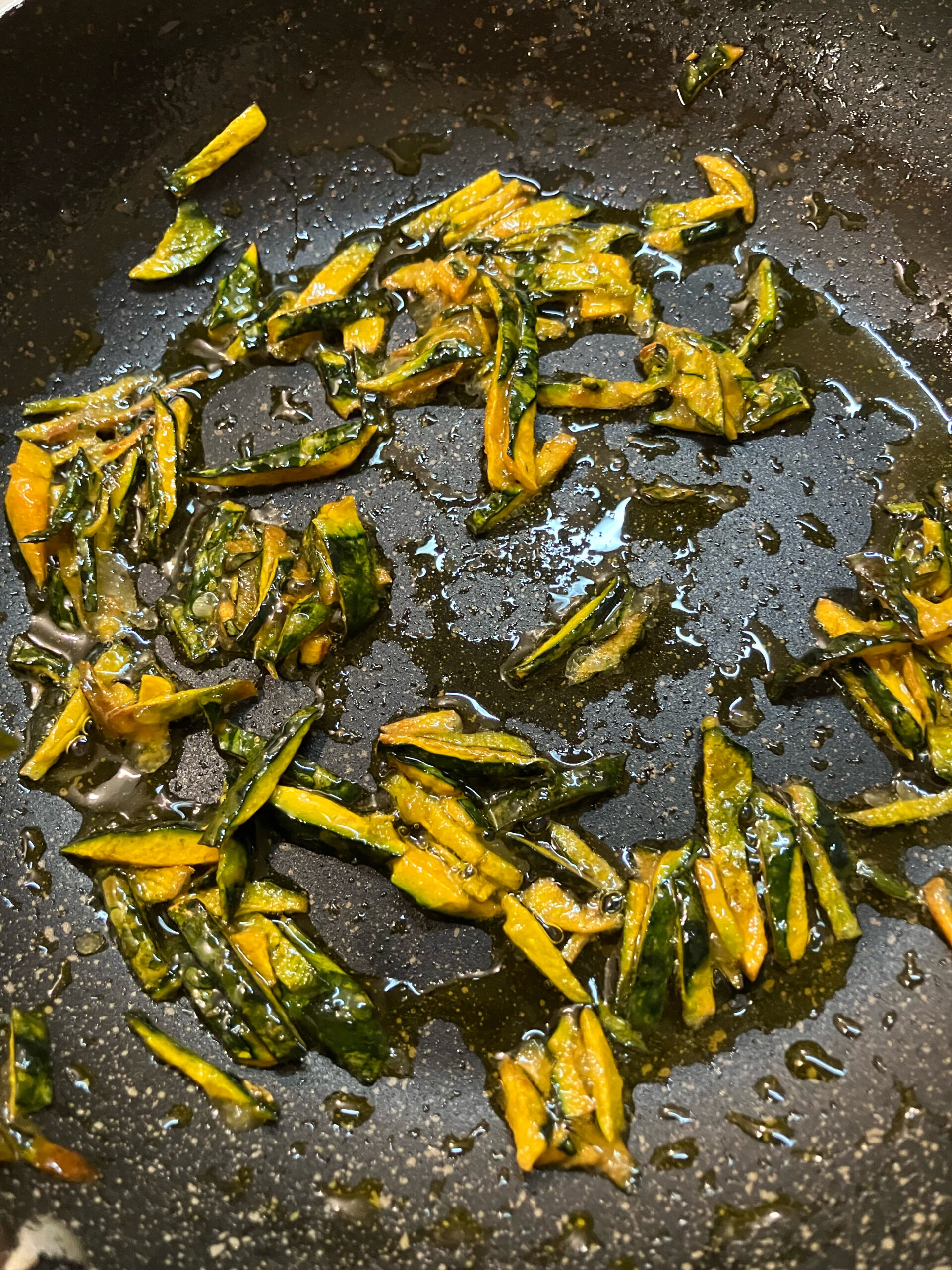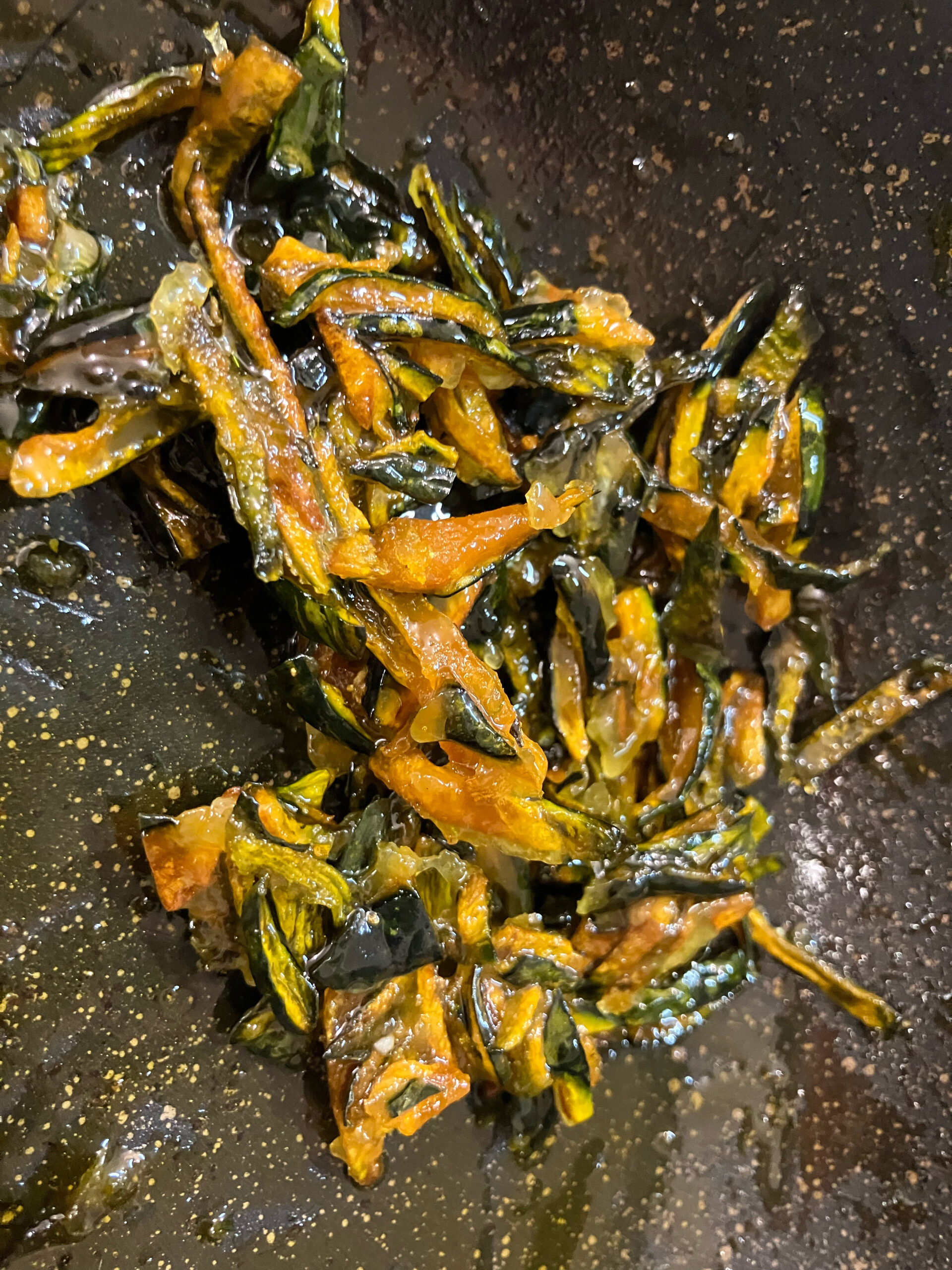 取り除いたかぼちゃの皮も何かできないかなーと炒めて甘塩っぱい味付けにしてみたら