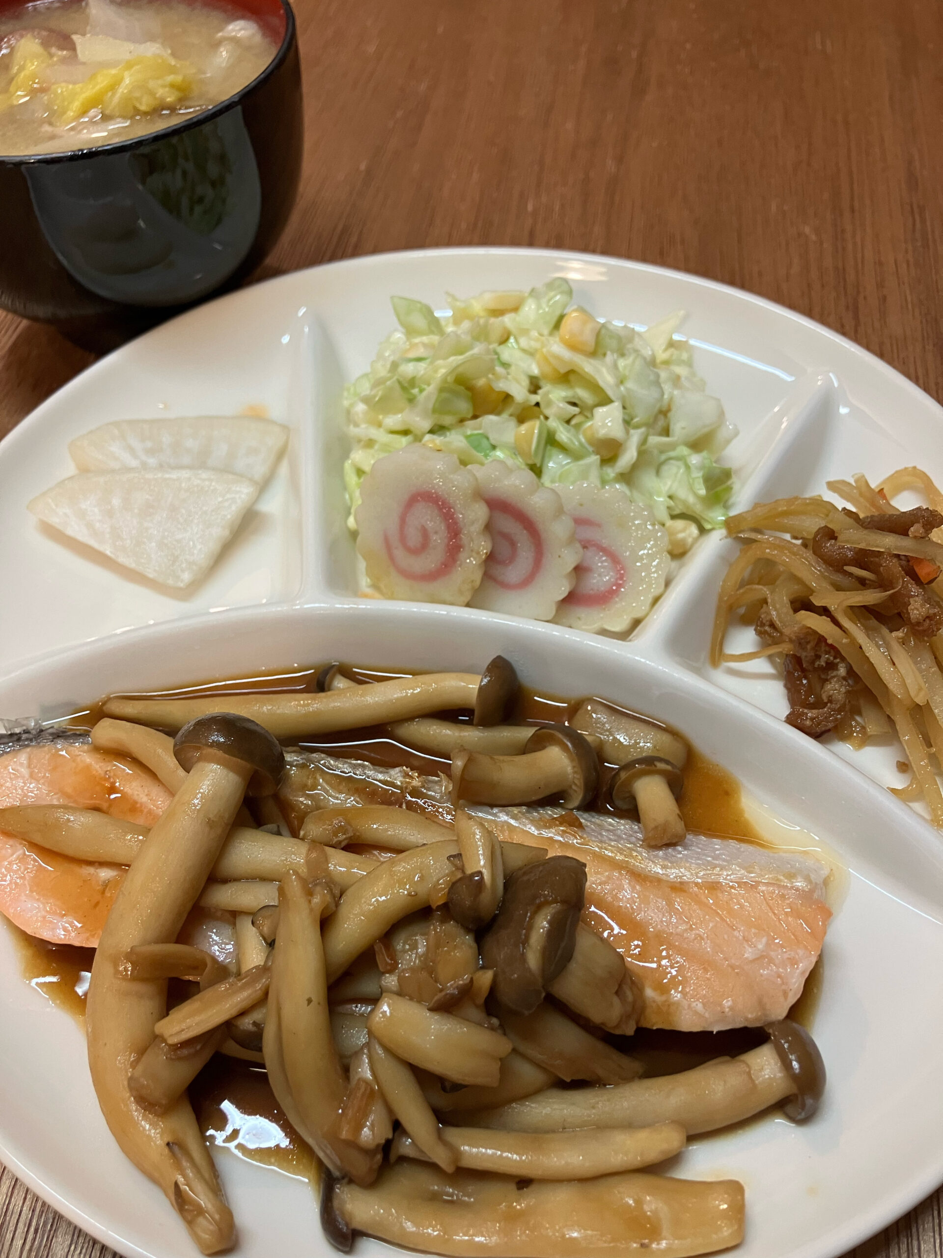 鮭にニンニクバター醤油のきのこソースの日